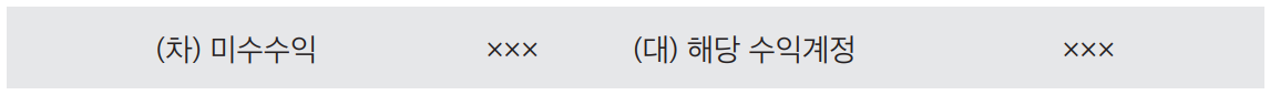 - 미수수익 : 당기에 실현된 수익이지만 아직 수익으로 계상하지 않은 부분은 수익을 인식하면서 자산인 미수수익을 계상한다.