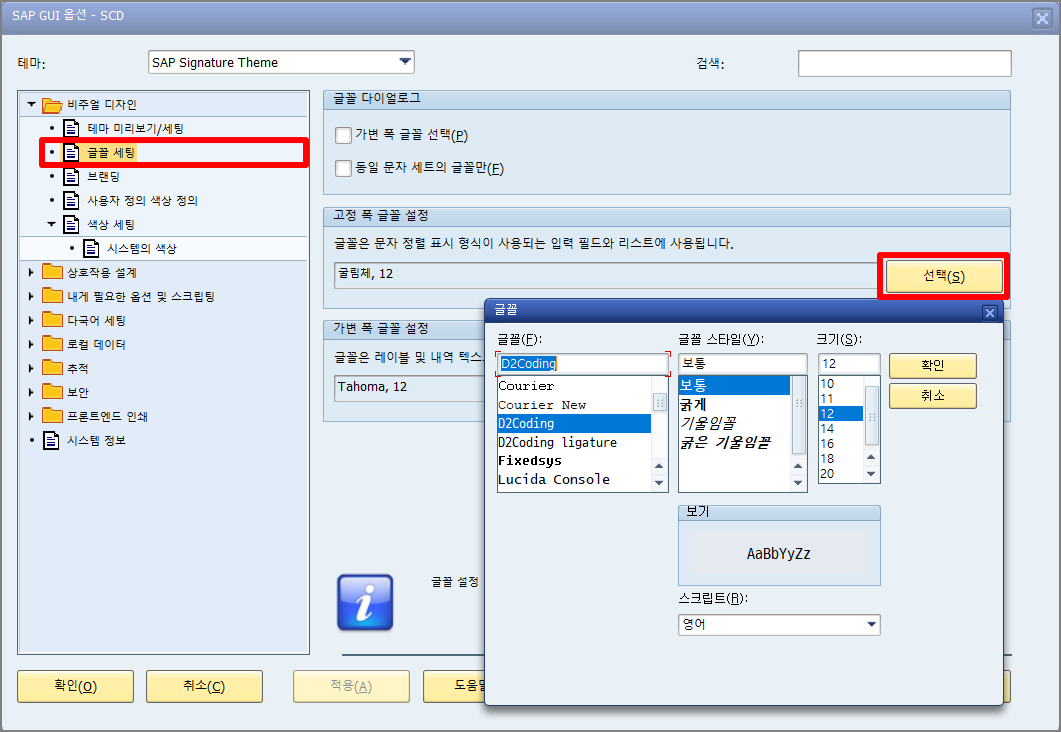 이번에는 SAP GUI 폰트 등을 변경하는 방법이다.